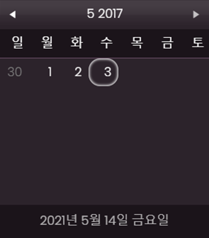 위와 같이 선택할 수 없는 날짜는 아예 보여지지 않는다.