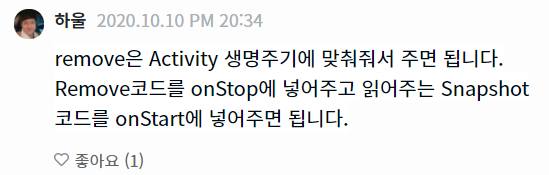 onStop()을 override 해주어 여기서 remove시켜준다.