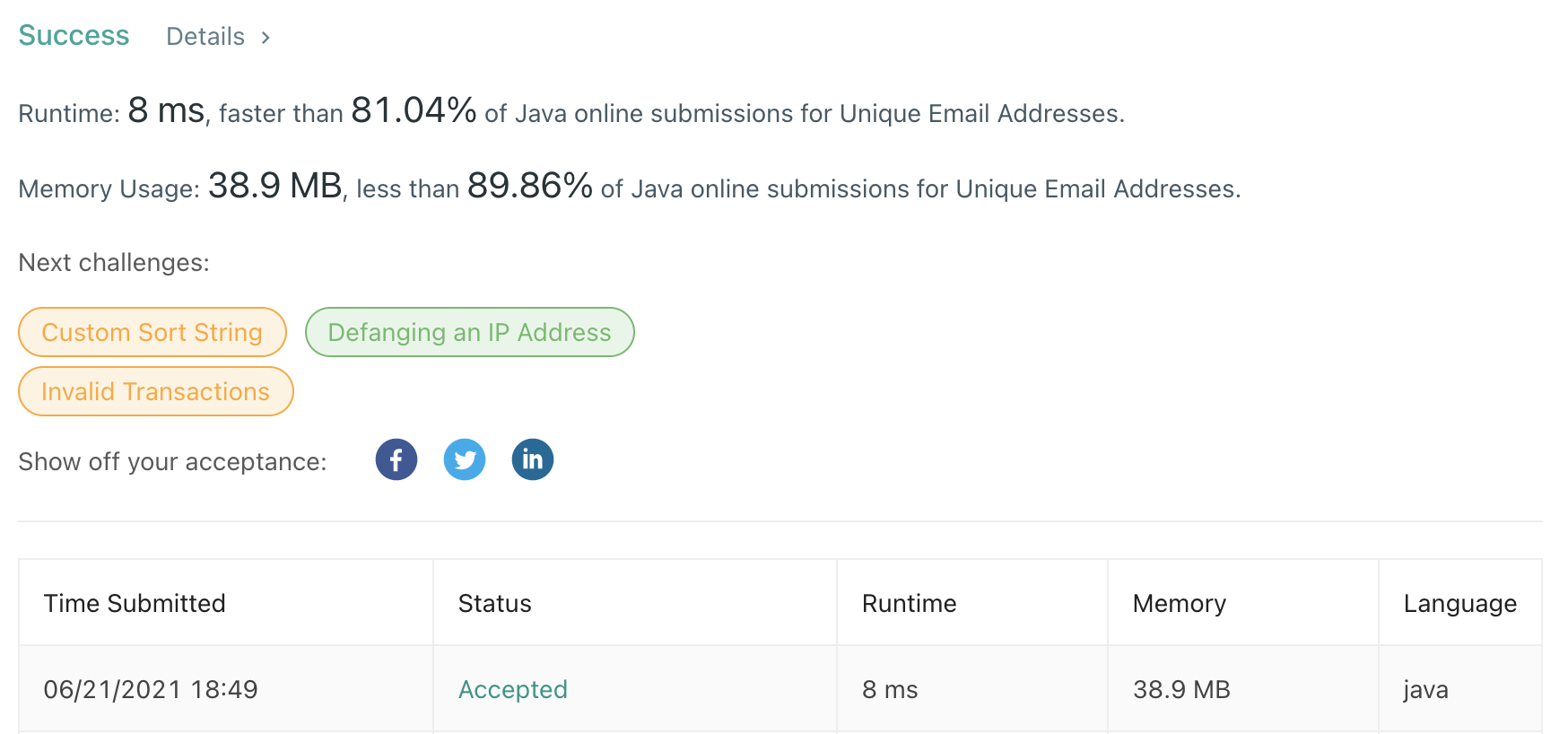 StringBuilder를 통해 .과 +의 특성을 고려한 이메일을 뽑아내어 set에 추가하였다.