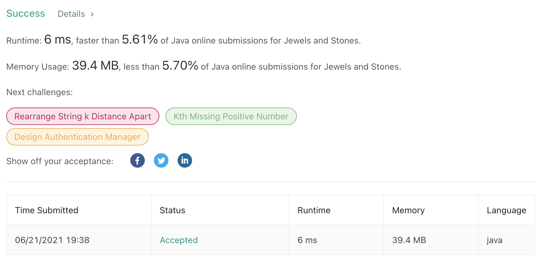 jewels의 요소를 split으로 잘라서 하나씩 배열에 넣어주고