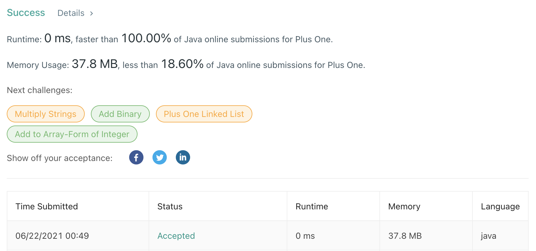 앞선 문제들과 똑같이 난이도는 Easy인데 처음에 아예 Integer.parseInt해서 변환 후 +1을 하고