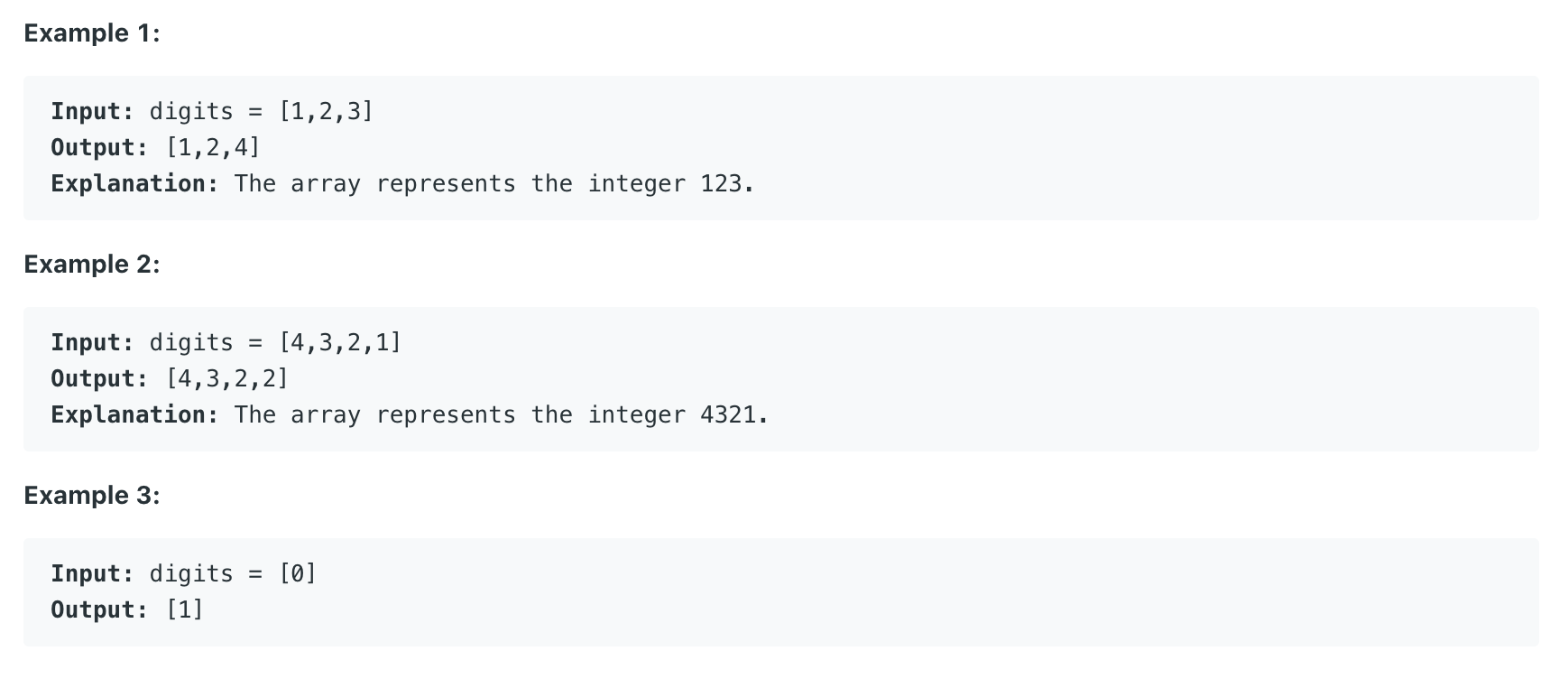 자릿수가 변하지 않으면 그대로 넘어가 if(digits[i] < 10) 이부분에서 걸리게 된다.