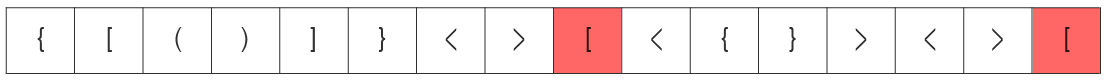아래와 같은 문자열은 유효하지 않은 문자열이다. 붉은색으로 표시된 괄호의 짝을 찾을 수 없기 때문이다.