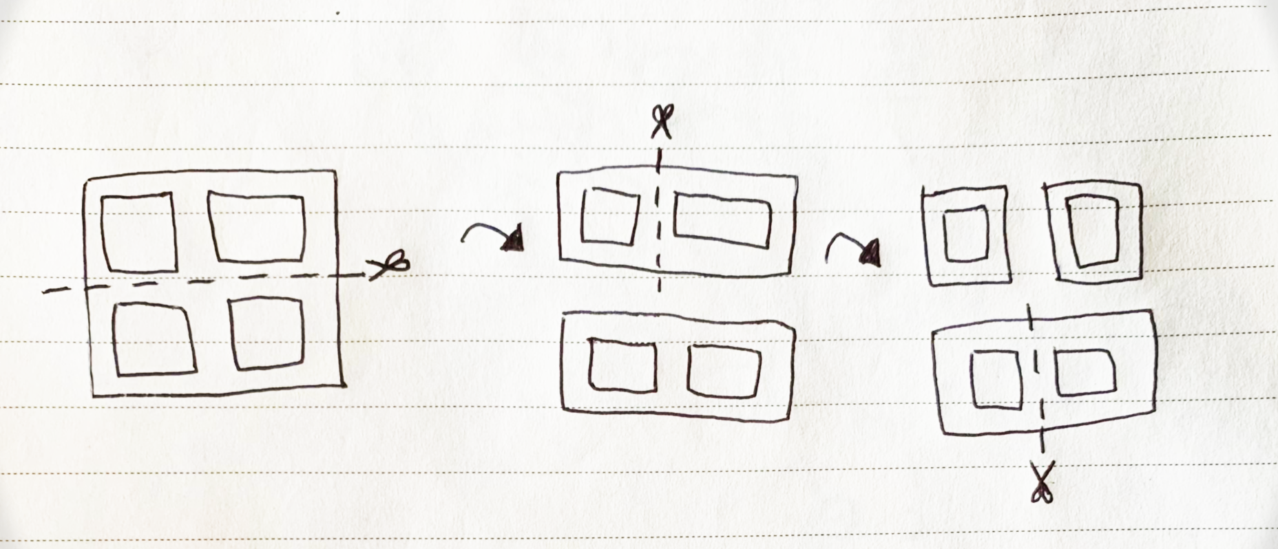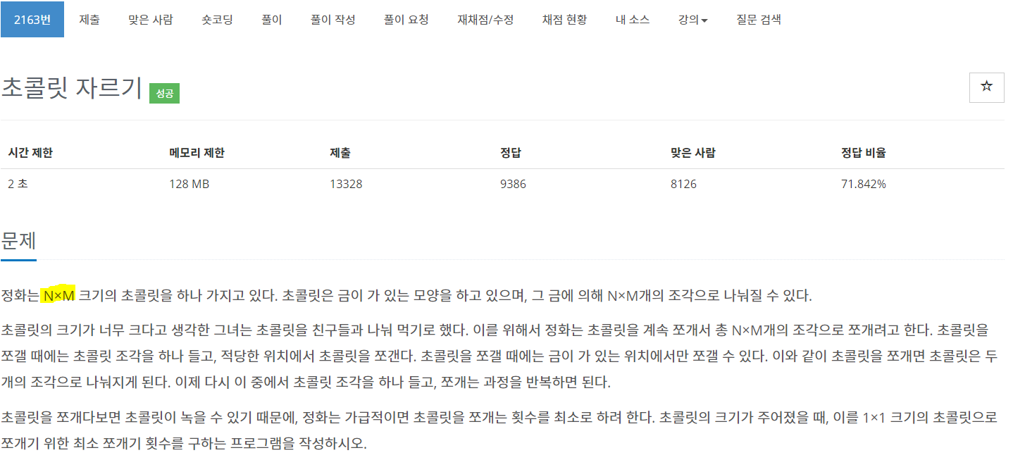 2 * 2 의 초콜릿이라면 이렇게 3번 자를 수 있는 것이다.
