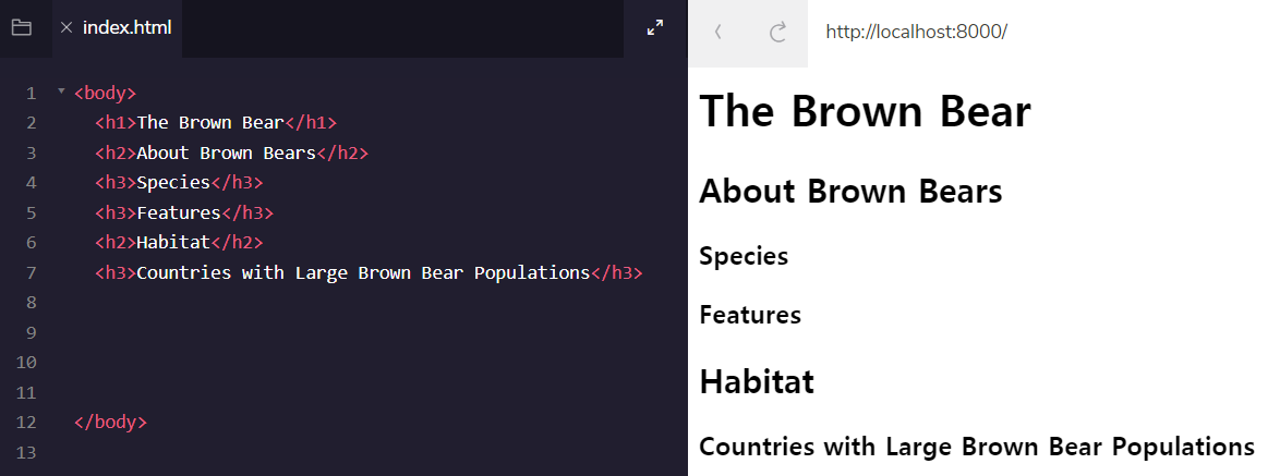 여기서 <p>는 시작태그, </p>는 끝태그, Hello는 컨텐츠이다.