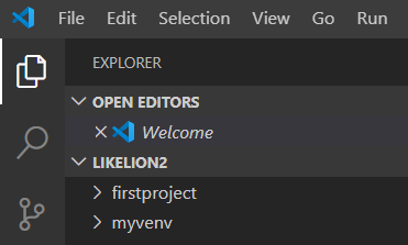 왼쪽바에서 폴더를 확인하면 프로젝트, 가상환경 순으로 생성됨